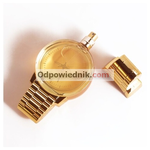 Perfumy zamknięte w eleganckim flakonie w kształcie zegarka.